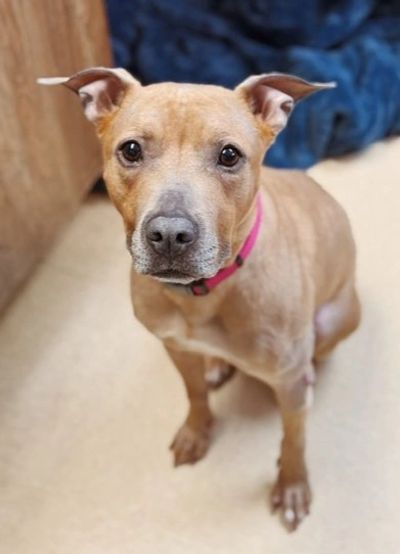She's a social girl who gets along well with cats and kids, however, she is not good with other dogs. She's got that perfect mix of laid-back and happy energy. No puppy chaos here - just a sweet, easygoing companion who's ready to be your sidekick for walks, couch time, and everything in between.